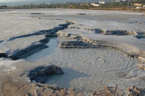 View of a mud pool in the Salinelle of Vallone Salato, Etna. Fluids are emitted through marly clays of the foredeep sedimentary deposits (Image credits: Emanuela Bagnato).