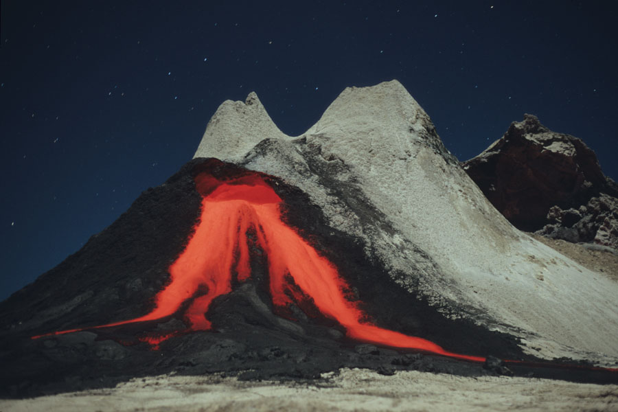 | Description: | Ol Doinyo Lengai (2962m), "Mountain of God" in the Maasai language,is an active volcano located in the Gregory Rift, south of Lake Natron within the Arusha Region of Tanzania, Africa. Oldoinyo Lengai Volcano is the only volcano to erupt sodium carbonatite lavas in historical times. These lavas have a significantly lower melting point (around 500'C) than “normal” silicate lavas (around 1200'C) and their weak incandescence can only be observed at night. |
