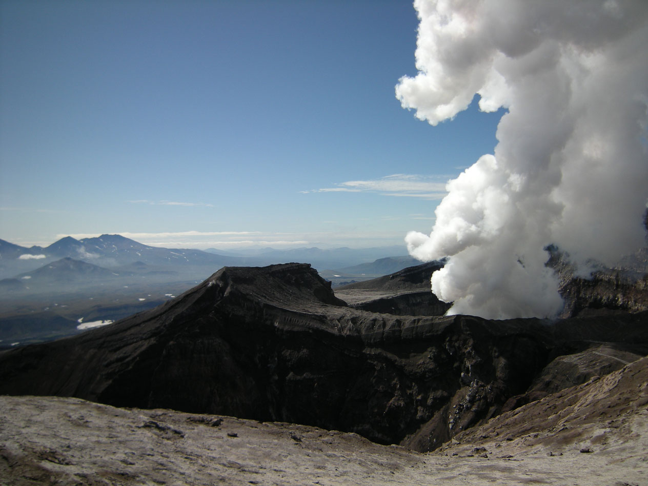 | Description: | Gorely is an actively degassing volcano in Kamchatka. After the 1984–86 eruption, an acidic lake was formed in this crater, which has also manifested persistent fumarolic activity with steam plumes rising several km high on occasion. |