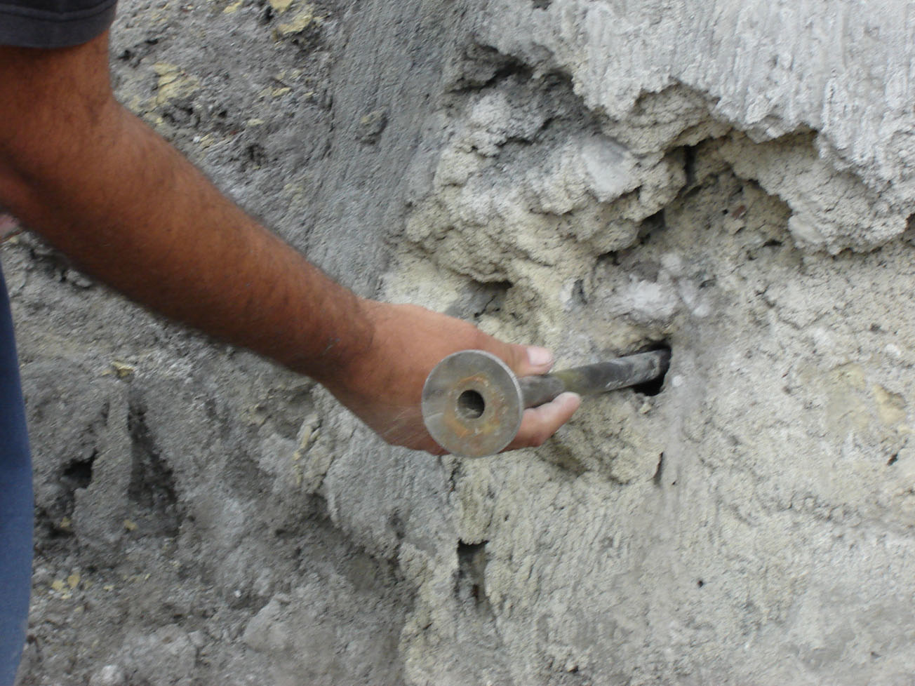 | Description: | Inside one of the most impressive CO2 manifestations in Tuscany called Inferno, NE of Amiata Mt. It a 1 inch wide hole discharging CO2 that can be felt at 1 m of distance with a hand. |