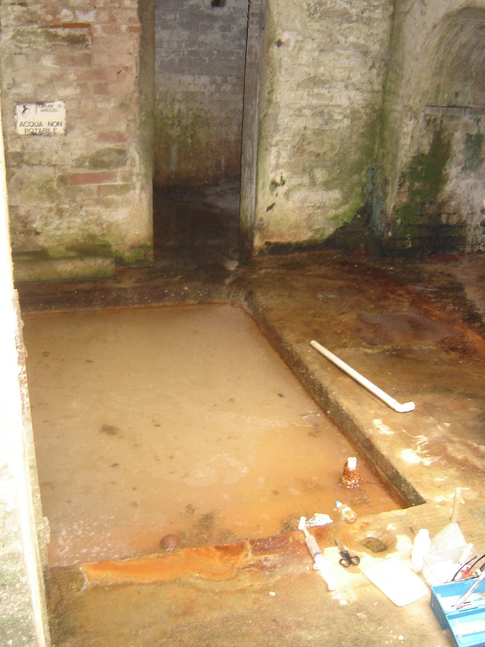 | Description: | The CO2-rich spring discharges in the building that in the XIX century was hosting the old Terme di Arezzo. |