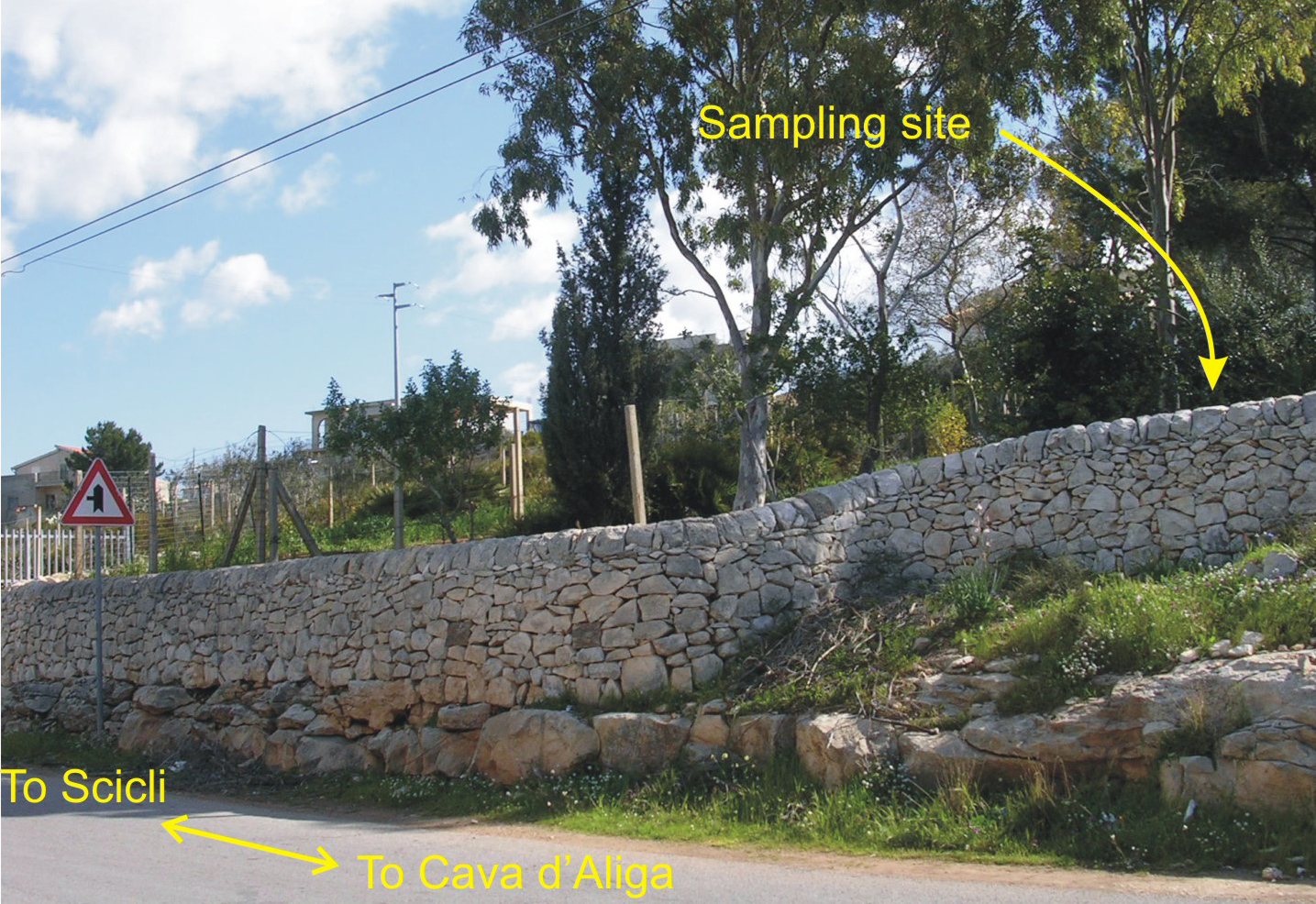 | Description: | The sampling point is located at about 5 kilometers in S direction respect to Scicli, near the village Cava d'Aliga. The soil degassing point in placed behind a little rock wall, in the side of a local road in Contrada Pagliarelli, in corrispondence of an outcrop of stratified white limestone. This sector of the hyblean plateau is interested by an important active tectonic lineament, the Scicli line, at which are attributed in part the recent seismic events of 1980 and 1990. |