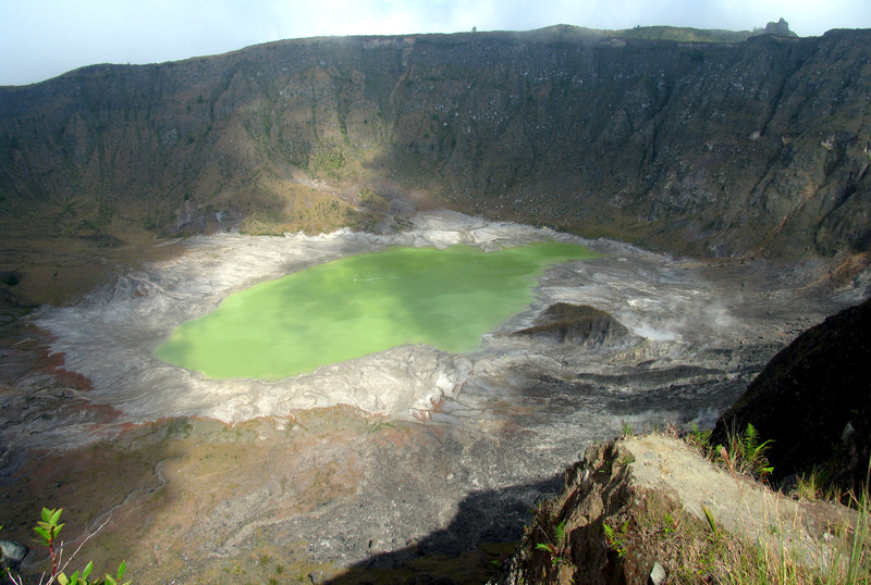 | Description: | The El Chichón dome complex (1,100 m.a.s.l.) is located in the northwestern part of the State of Chiapas in southeastern Mexico. Currently, intense hydrothermal activity, consisting of fumaroles (mainly at the boiling point), steaming grounds, a soap-pool and an acidic (pH≈2.3) and warm lake (~30 °C) occur in the summit crater. With the low pH of the lake, CO2 is mainly present as a gaseous phase and dissolved in water. |