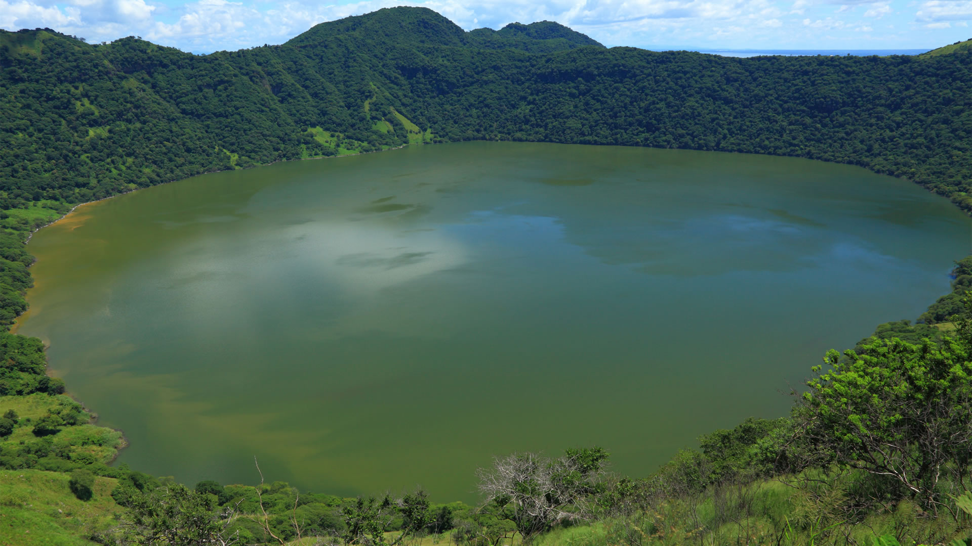 | Description: | Apoyeque is a pyroclastic shield, located in the Chiltepe Peninsula Natural Reserve in Nicaragua. It has a 2.8-km wide, 400-m-deep, lake-filled caldera. The lake at its center, Apoyeque lake, also called Laguna de Apoyaque, its shore 100 meters below the peak of the caldera, at its bottom reaches down to sea level. |