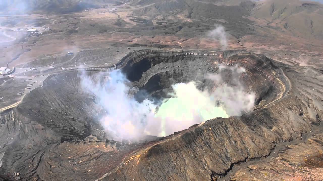 | Description: | Mount Aso is the largest active volcano in Japan. In recent years, it has been the site of frequent ash eruptions.Aso is no single edifice, but a complex of active vents in the center of a large 24 km wide caldera. |